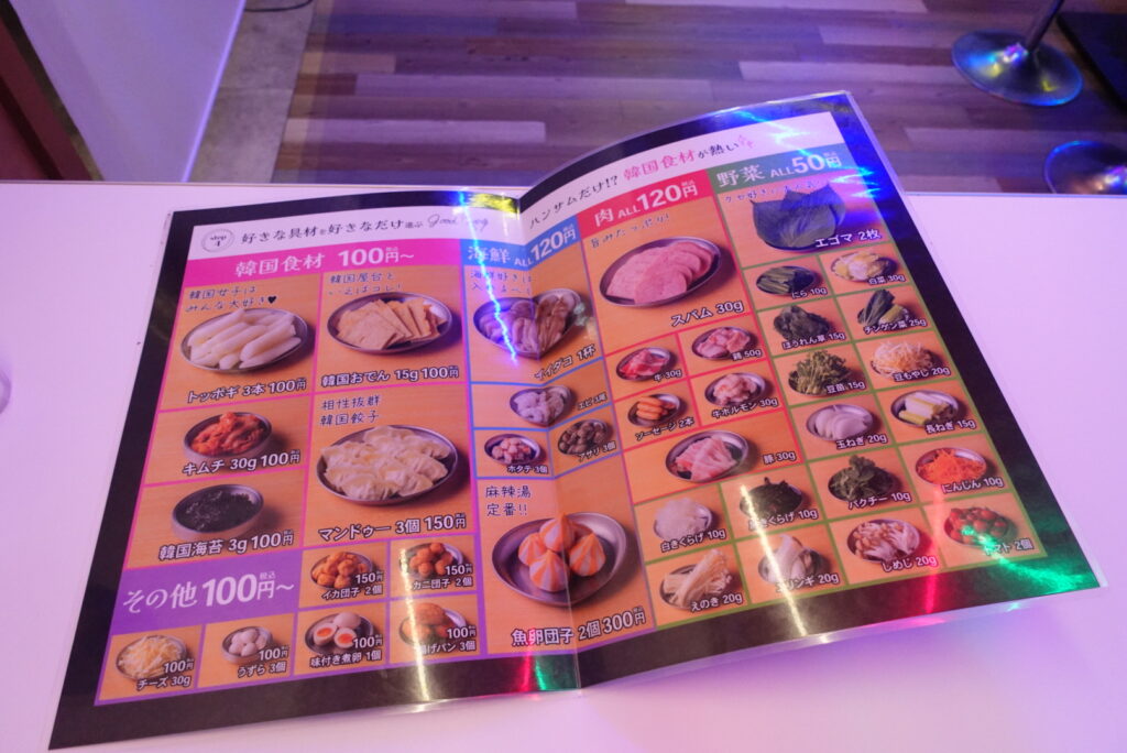 トッピング:マンドゥ・キムチ・イイダコ・白きくらげ・ニラ・魚卵団子・トッポキ