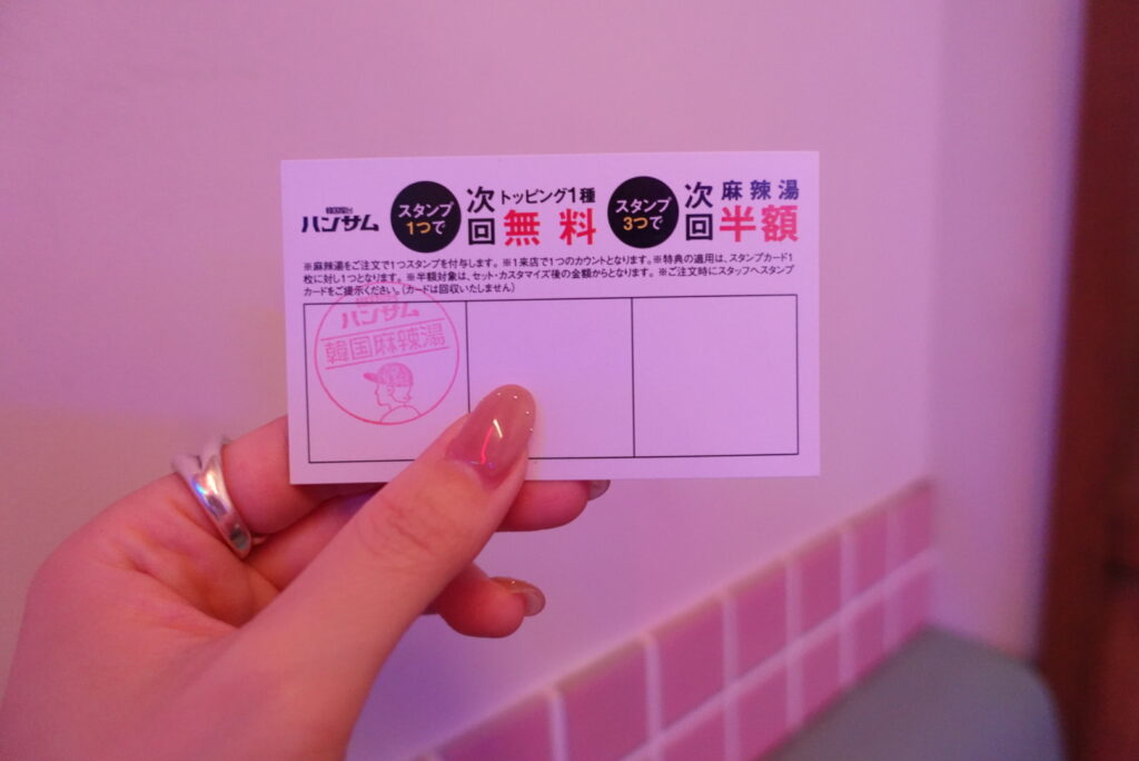 麻辣湯注文で1つスタンプが貯まるスタンプカード🍜