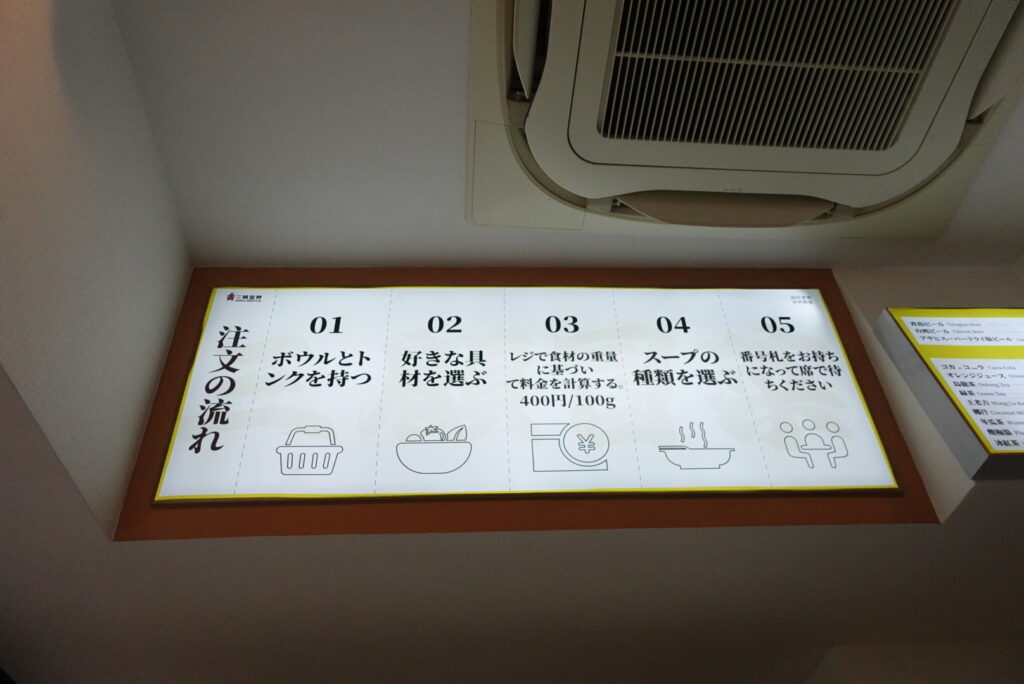その際にスープの種類・辛さ・サービス麺を聞かれます。
