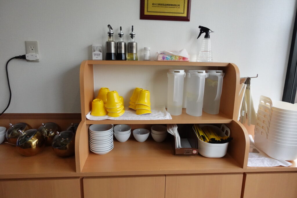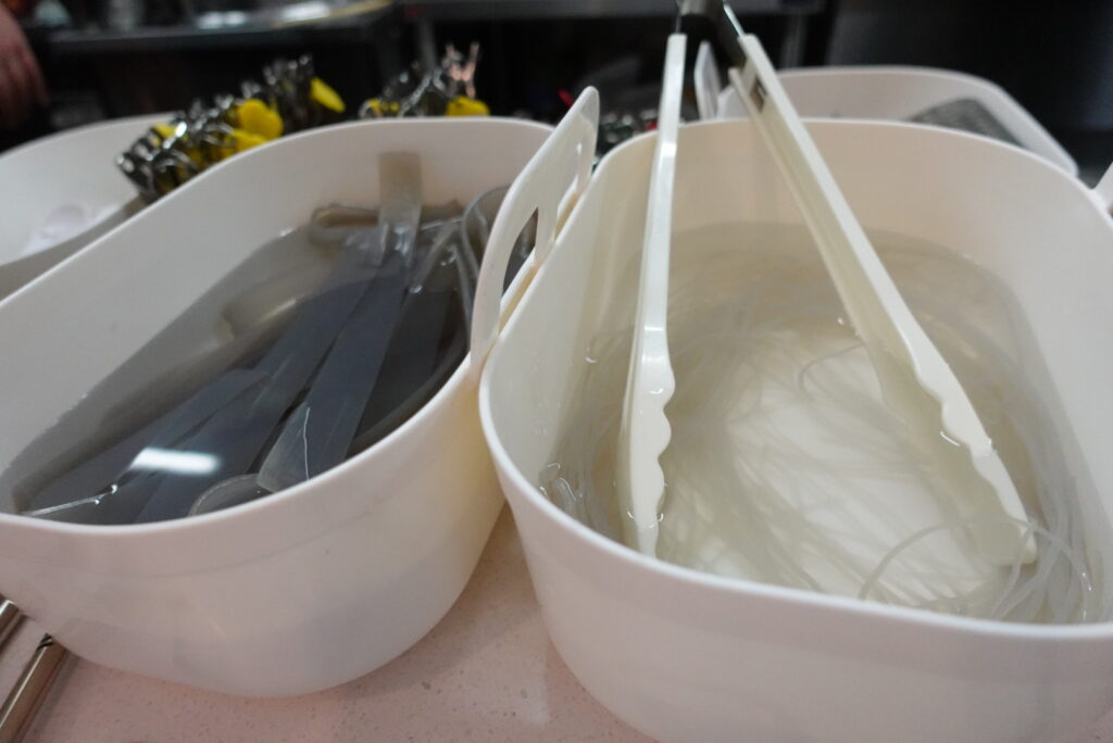 この時に味変調味料を作ったり、お箸や紙エプロンを用意したりします。