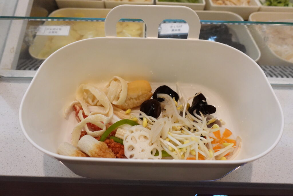 入店してすぐ、ボウルとトングがあるのでセルフで取ります!