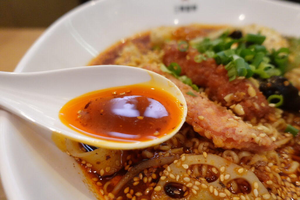 スープはサラサラとしていて、辛さがダイレクトに澄み渡ります。