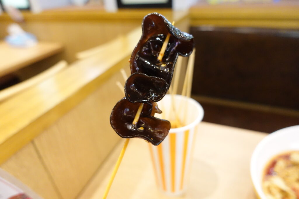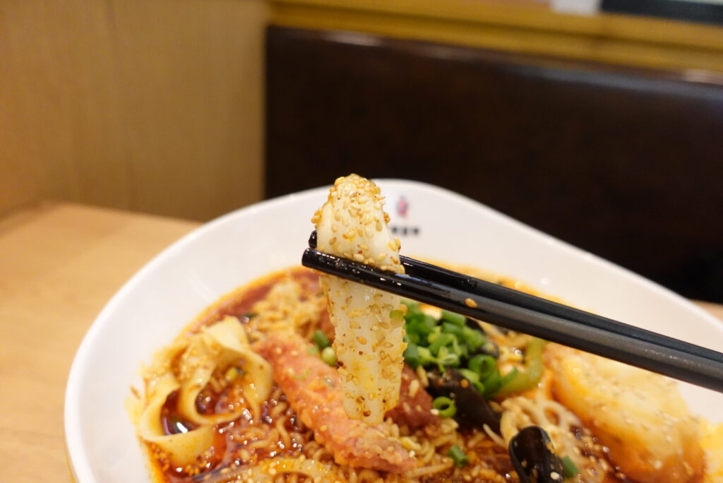 具材はきくらげやセンマイ、練り物などで辛さは控えめでした。