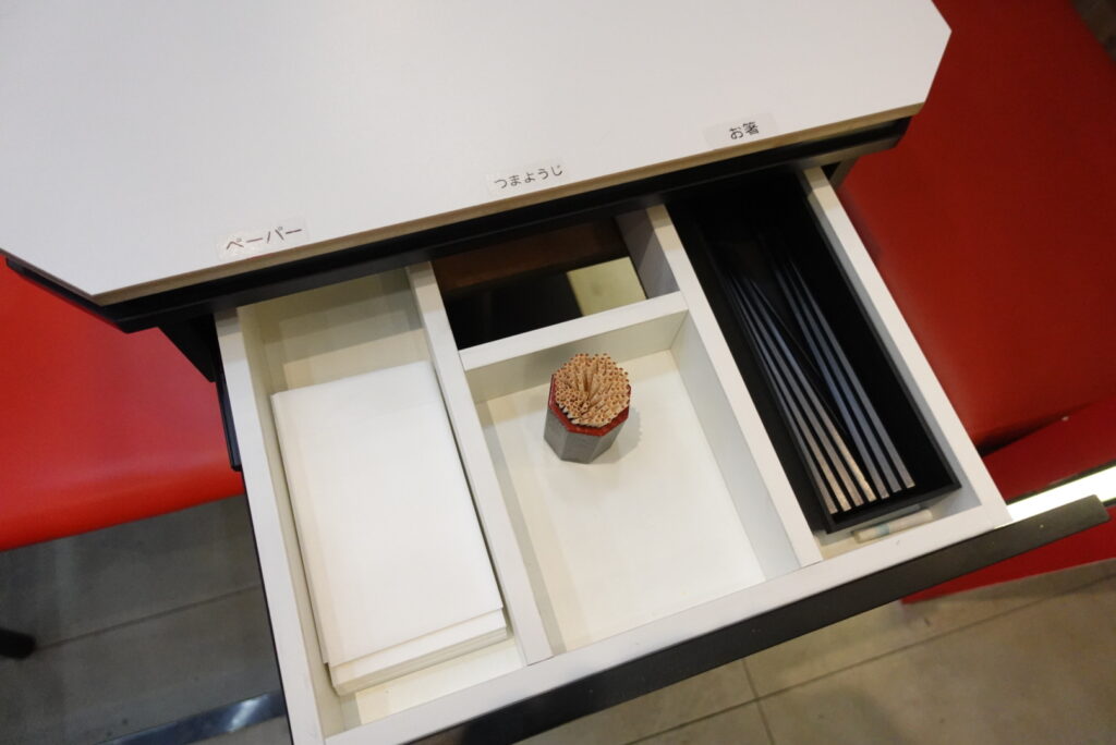 お箸や爪楊枝ペーパーはテーブルの中にあります☺️
