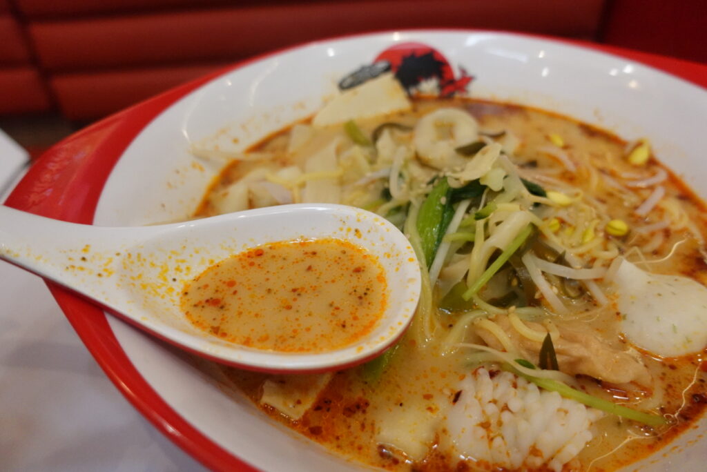 ③店員さんにボウルをお渡しして、スープ・辛さを選ぶ
