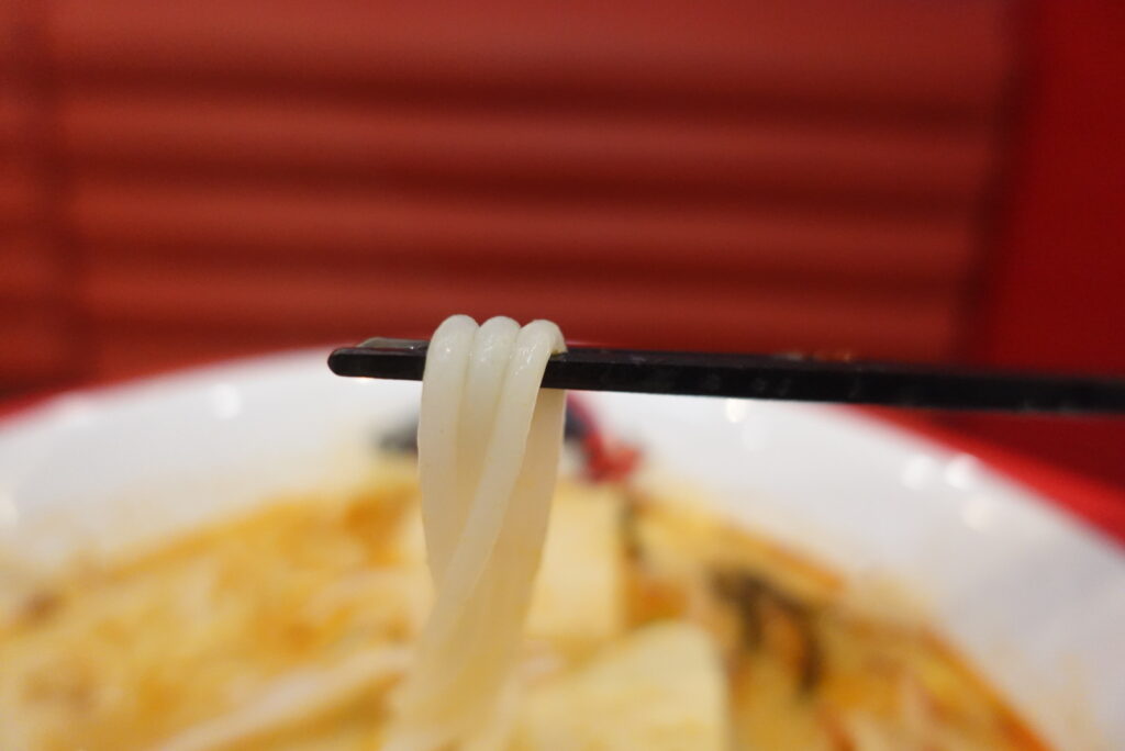 ムチムチとして食感で、小麦の旨みも。啜れなさはあるけど食べ応えバッチリ◎